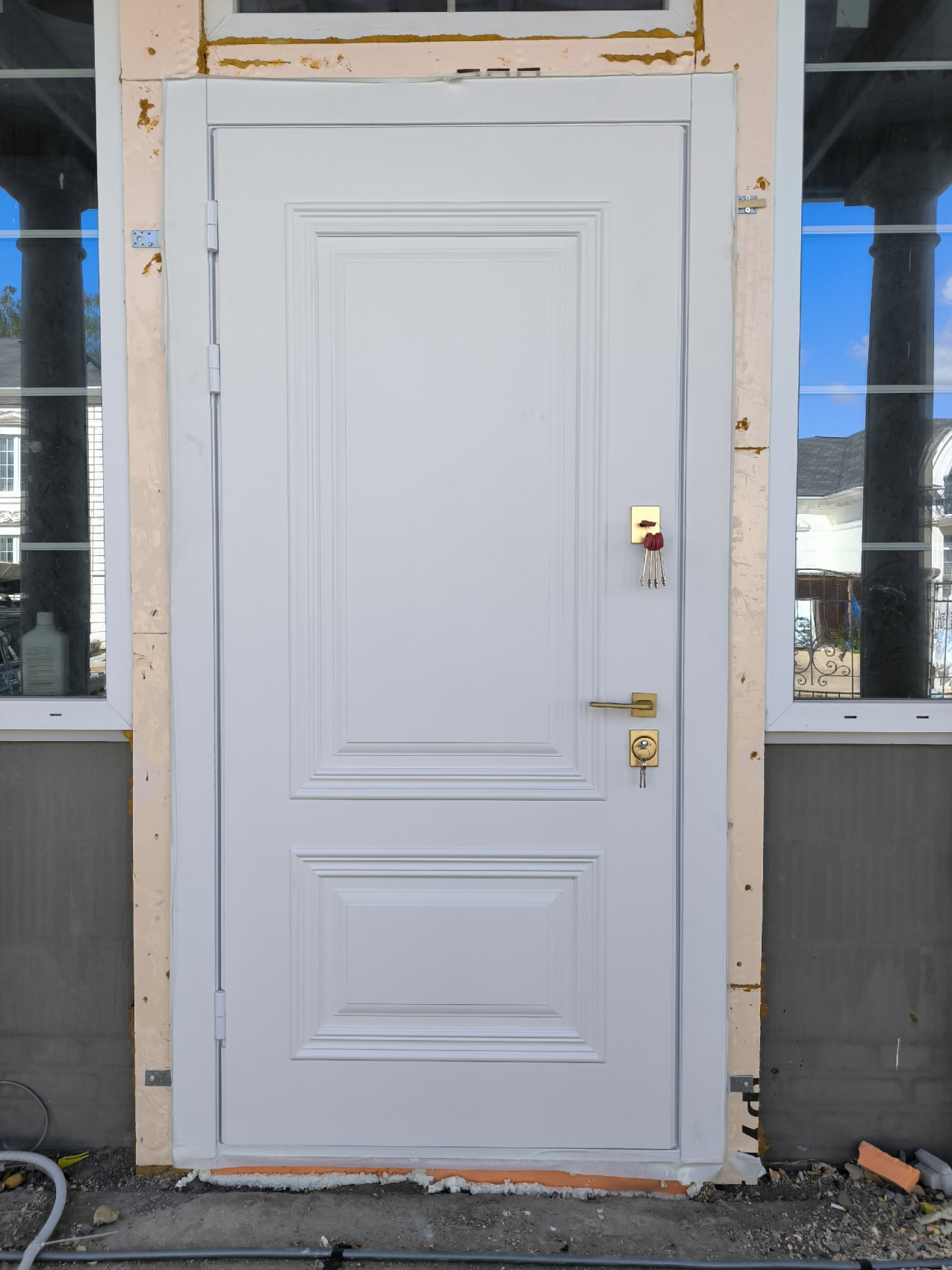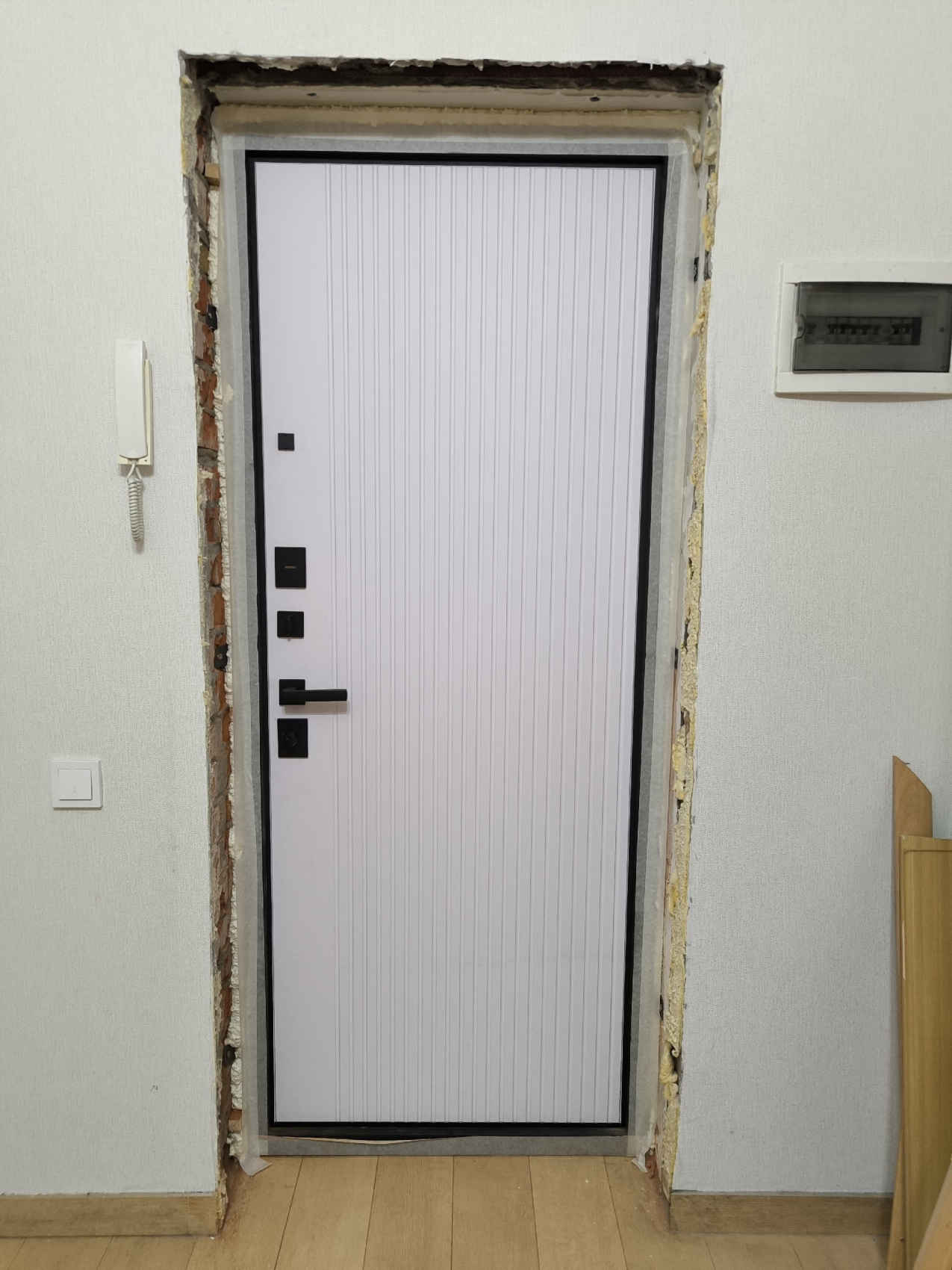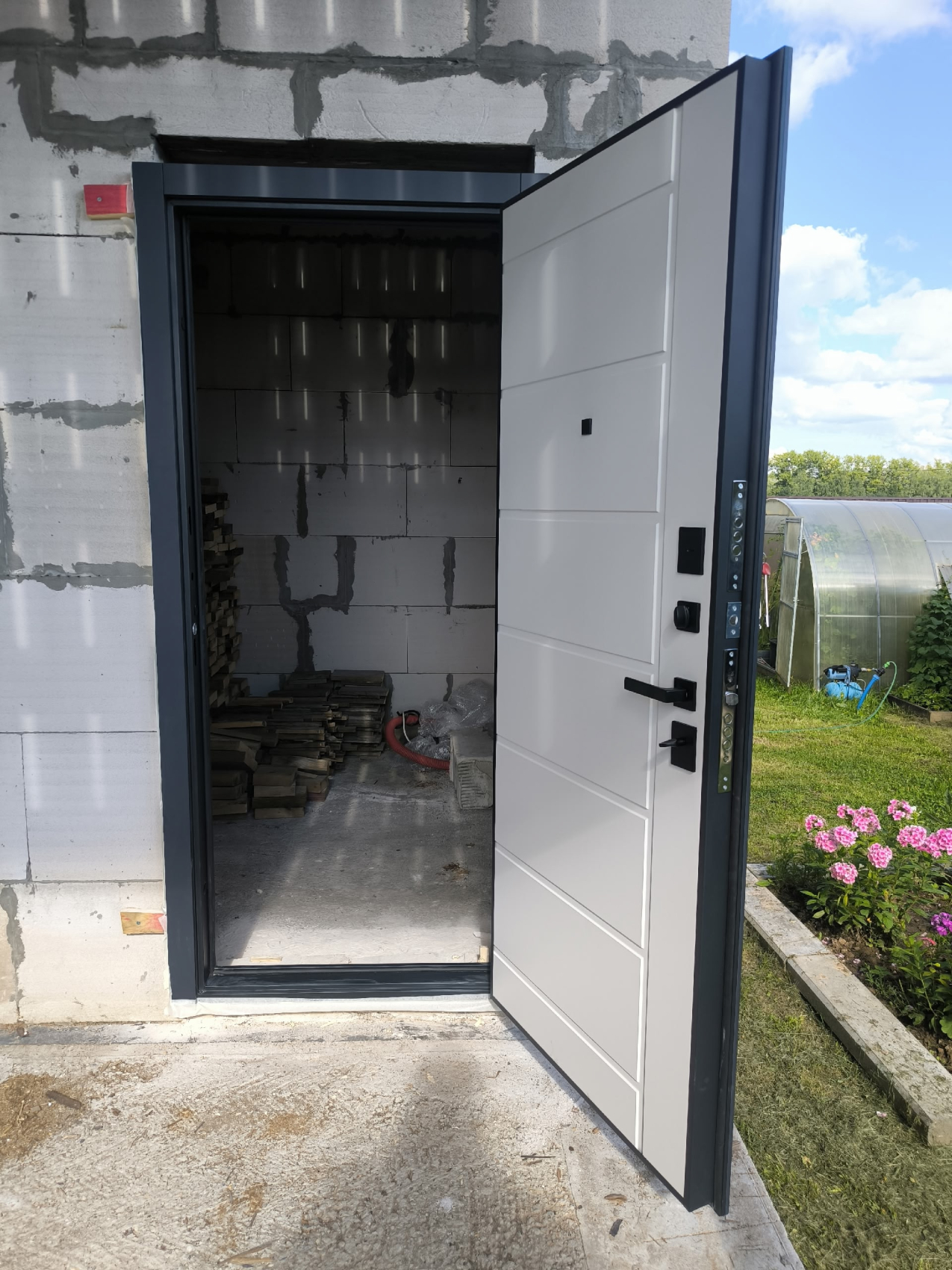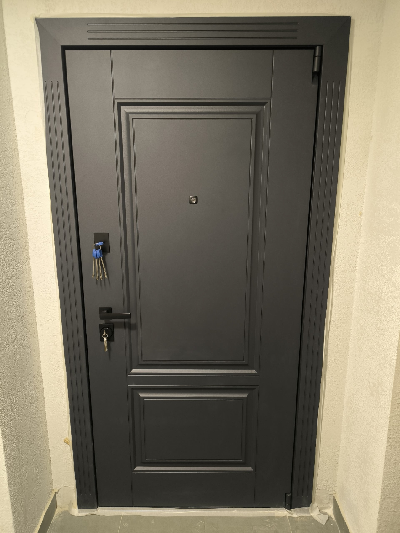Входная дверь с утеплением для таунхауса №54 сочетает современный внешний вид и практичные технические решения, которые делают её отличным выбором для частного дома или дачи. Конструкция выполнена из цельногнутой оцинкованной стали толщиной 1,5 мм и усилена профильными трубами, что обеспечивает прочность и устойчивость к нагрузкам. Особое внимание уделено сохранению тепла: терморазрыв в полотне и коробке предотвращает промерзание и появление конденсата, а плотный слой шумо-теплоизоляции из пенопласта вместе с тремя контурами магнитного уплотнения удерживает тепло даже в морозные дни. Дверь оснащена противосъёмными блокираторами для надёжной защиты и отличается продуманной геометрией, благодаря чему выглядит строго и стильно. Такая модель не только сохранит уют в доме, но и подчеркнёт статус владельца за счёт своей функциональности и аккуратного современного дизайна.